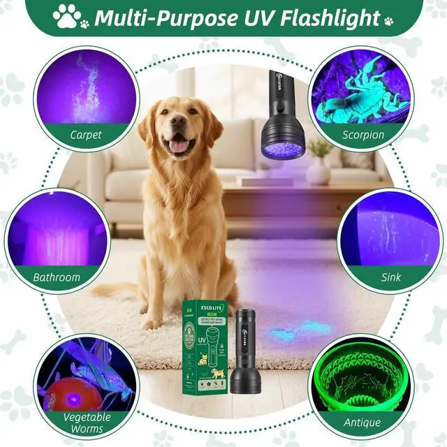 - For Puppies: Escolite uv flashlight pet urine detector can quickly spot stains and help maintain a clean environment, making house training easier.