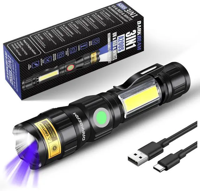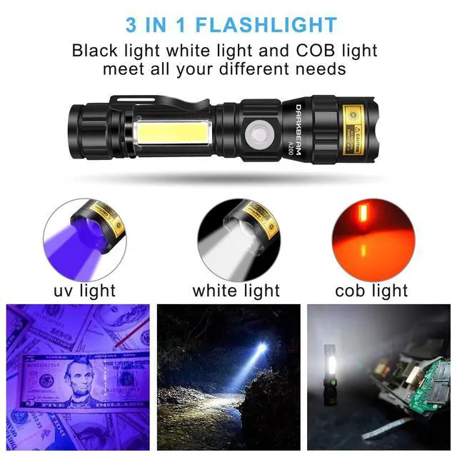 DARKBEAM A200 Serial 3 in 1 UV rechargeable flashlight torch (white light flashlight + UV light torch + COB light) High Lumens & 4+3 working modes