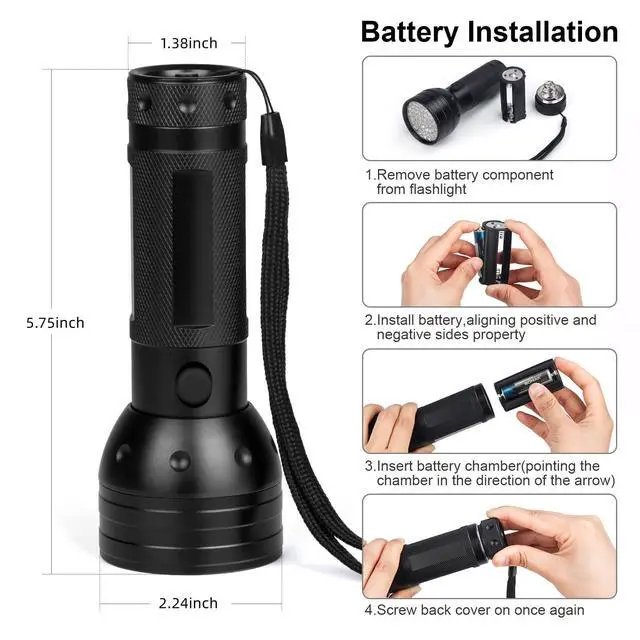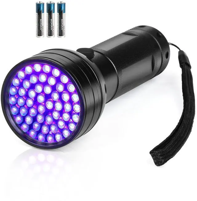 The UV LED blacklight flashlights are made of heavy-duty resistant aluminum alloy and 51 LED, Professional Grade 395nm.