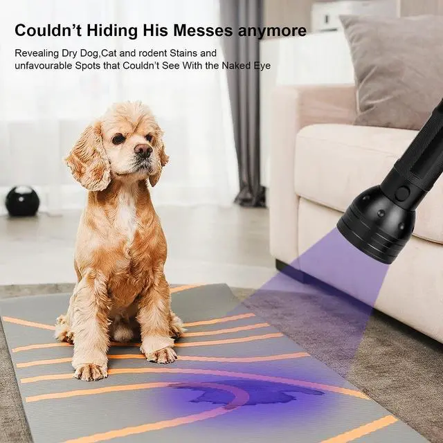 The UV Flashlight works great to detect hidden pet stains of dogs, cats and other pets on carpets.