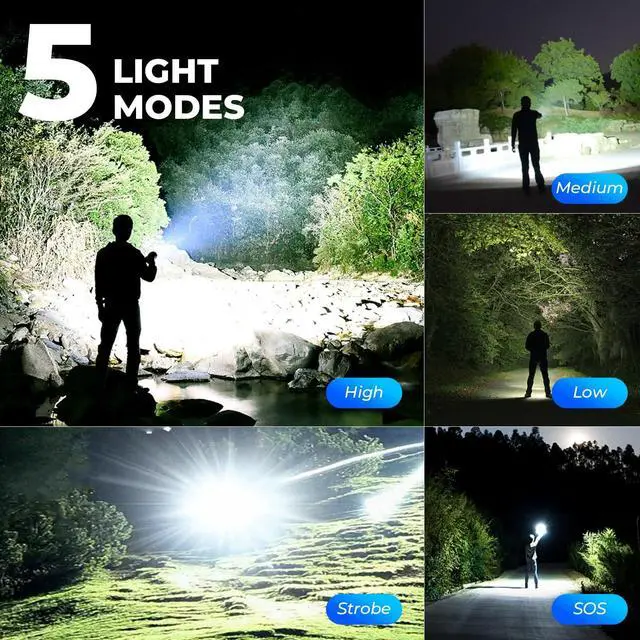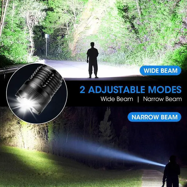 Adjustable Beam: You can adjust the head of the LED rechargeable flashlight to choose between wide-area illumination or long-range illumination. The narrow beam illuminates objects up to 3280 feet away and the wide beam illuminates a room up to 200 square meters.