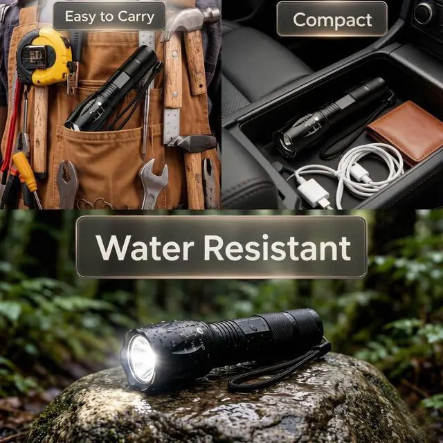 7. Easy to carry: With its compact size and included carrying strap, the LED flashlight is easy to take with you wherever you go. Keep it in your pocket, backpack, or glove compartment for quick access whenever you need it.