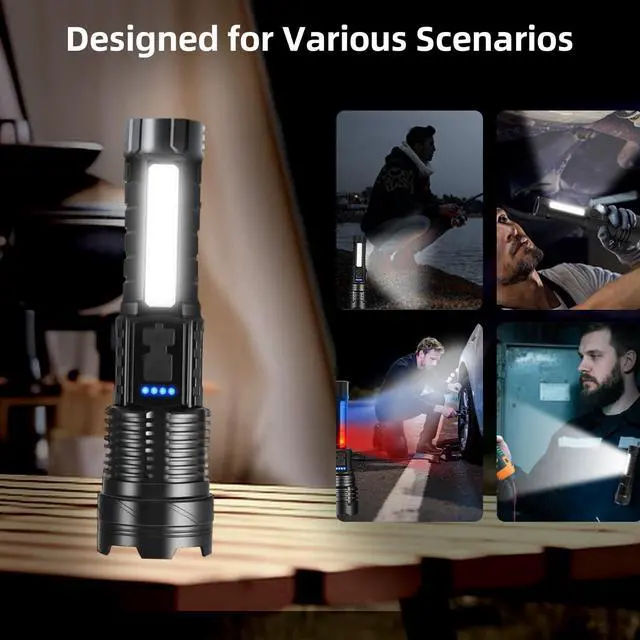 From focused beam to floodlight glow—effortlessly adapt to any scenario. Seamlessly switch between 7 distinct modes, including High, Low, Strobe, and multi-function COB side lighting with red and blue safety signals. The smooth zoom feature lets you control light distance and spread with precision.