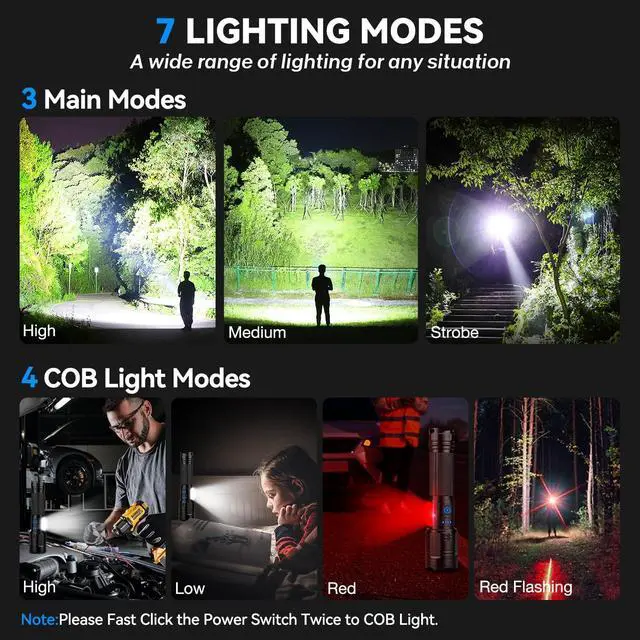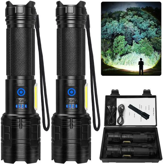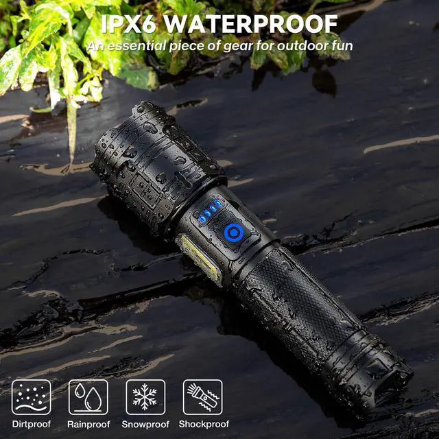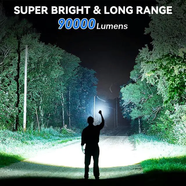 Adjustable Beam: You can adjust the head of the LED rechargeable flashlight to choose between wide-area illumination or long-range illumination. The narrow beam illuminates objects up to 3280 feet away and the wide beam illuminates a room up to 200 square meters.
