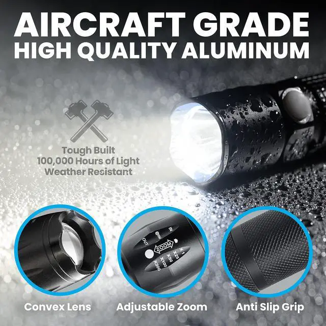 | Recommended Uses For Product | bright flashlight, camping flashlight, flash light, flashlights for emergencies, flashlights high lumens, heavy duty flashlight, led flashlight, led flashlights, linternas recargables de alta potencia, small flashlights powerful, tactical flashlights high lumens |