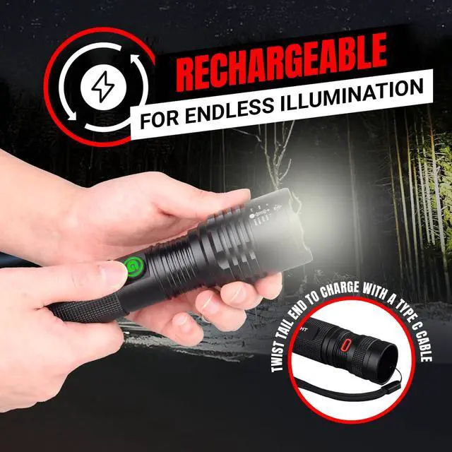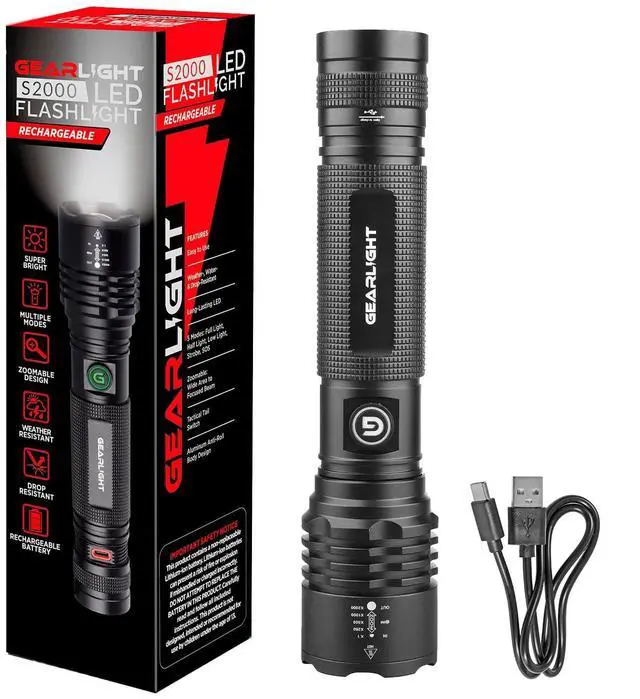 GearLight S2000 Rechargeable LED Flashlight Ultra Bright, Durable, and Ready for Anything Experience powerful lighting performance with the rechargeable GearLight S2000, a high-lumen LED flashlight built for reliability and convenience. Designed for outdoor adventures, emergency preparedness, and everyday use, this upgraded version combines long-lasting brightness with the ease of USB rechargingno need to buy or replace batteries.