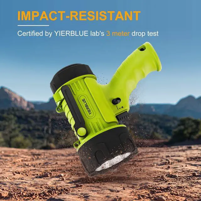 WATERPROOF & FLOATING, IMPACT RESISTANT: This spot lights outdoor handheld is IP67 waterproof and submersible up to 3ft, and even float back up to the surface if its dropped in water. The High strength ABS housing with silicone protective case ensures maximum durability, rugged body withstands dropping from up to 10ft.