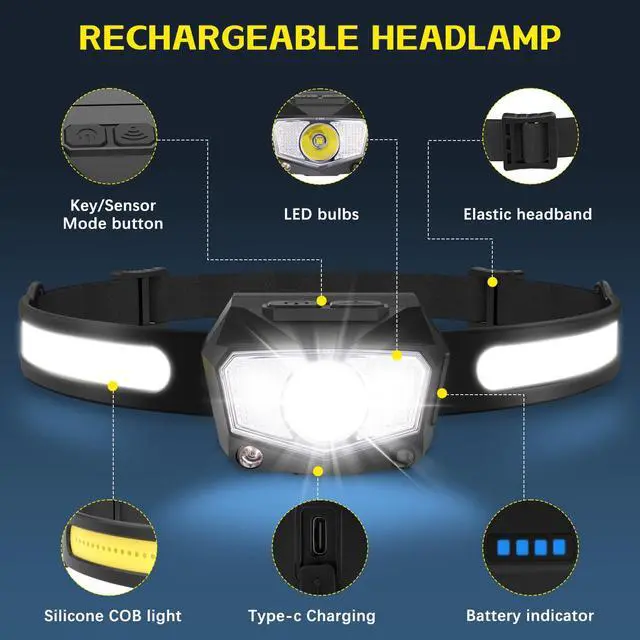 RECHARGEABLE HEADLAMP - 230° Wide Beam COB & 60° Super Birght LED