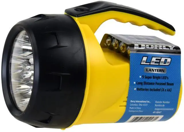 The 4AA – 9 LED Lantern contains 9 super bright producing 50 lumens of light. The lights durable construction features a handle mounted push button switch for ease of use. Its compact design and long distance focused beam of light make it the perfect lantern for any situation. The 4AA - 9 LED Lantern comes complete with 4 AA cell batteries and is available in assorted colors – red, black, and yellow.