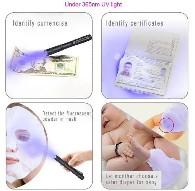 Package Included: 1 x 365nm Pen type UV Flashlight; 1 x 395nm Pen type UV Flashlight