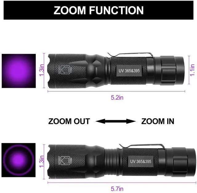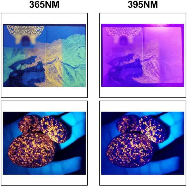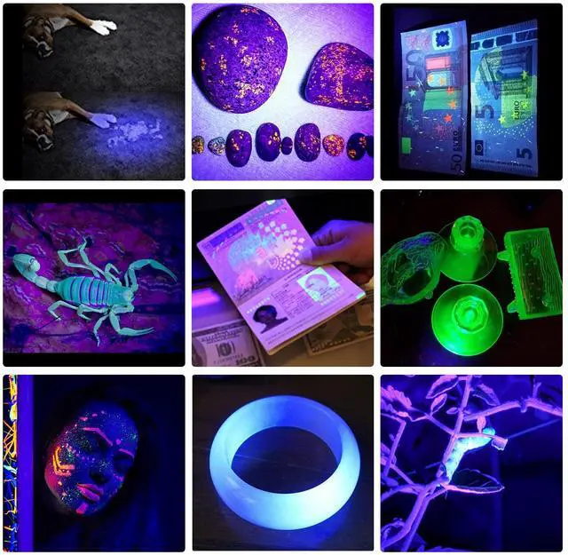 Emits black lights at wavelengths of 365 and 395 nanometers. It enables easier detection of dried pet urine stains and can also assist with antique appraisals, rocks, scorpions, fluorescent agents.