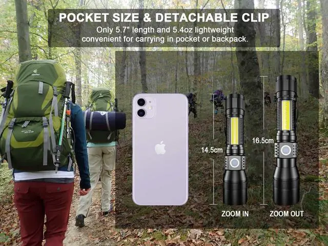 Zoomable Flashlight, simple stretching flashlight head to adjust the focusing light and floodlights,meet your various lighting needs.