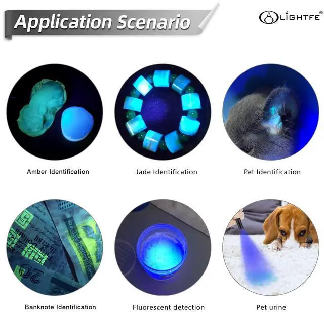 Multitask application in profession: such as detecting counterfeit documents, money verification, forensic science, gasoline inspection, amber and jewelry detection, body fluid detection and fluorescence, attracting certain breeds of fish or hunting scorpions and tracking other creatures.