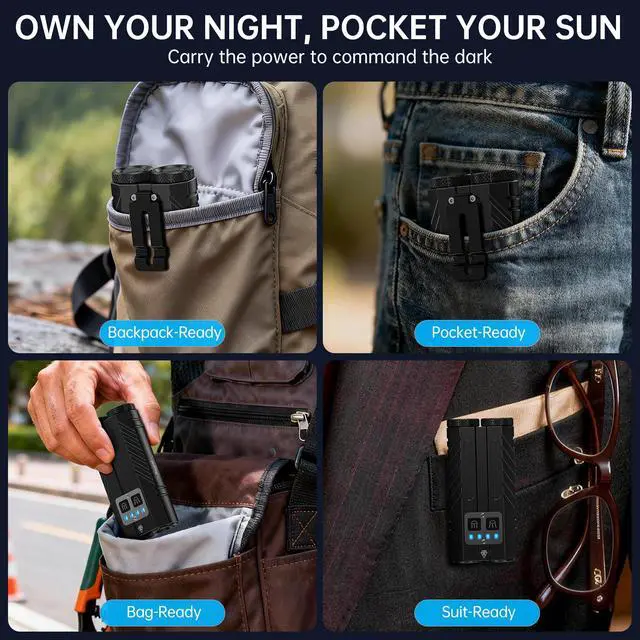 Compact Flashlight with Pocket ClipThis edc pocket flashlight only has 0.53lb/244g weight with batteries and 4.13in/105mm length. Precision-crafted with a compact body that fits right in your palm - easy to carry anytime, anywhere. The metal pocket clip allows you to easily attach it to your pocket, backpack, waist belt, gears or stores in your repair tool kit. And keeps it secure and accessible during work, car repair, emergencies, home or outdoor adventures.