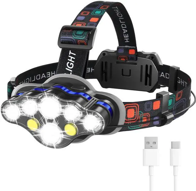 8 Lighting Modes & Long Press Function: MIOISY headlamp features 8 powerful led bulbs that provide high lumens. One-button control main light mode: main beam, side beam, all beam, and SOS strobe. One-button control COB mode: strong beam, warm beam, red light, SOS red strobe. Our head lamp have added extended functions. In any lighting mode, press and hold the mode button for 3 seconds to turn off the light directly, without going through all modes.