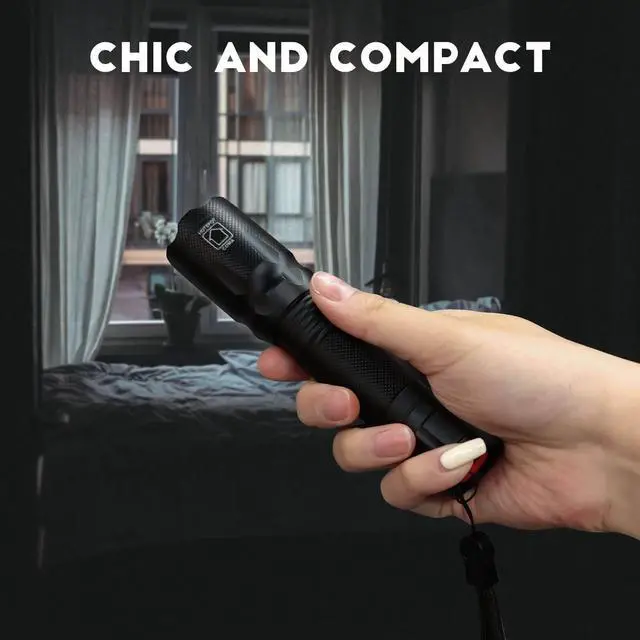 Slide the head of the flashlight back and forth for to adjusting the field of light view. Zooming out for long range observation and Zooming in for large area illumination