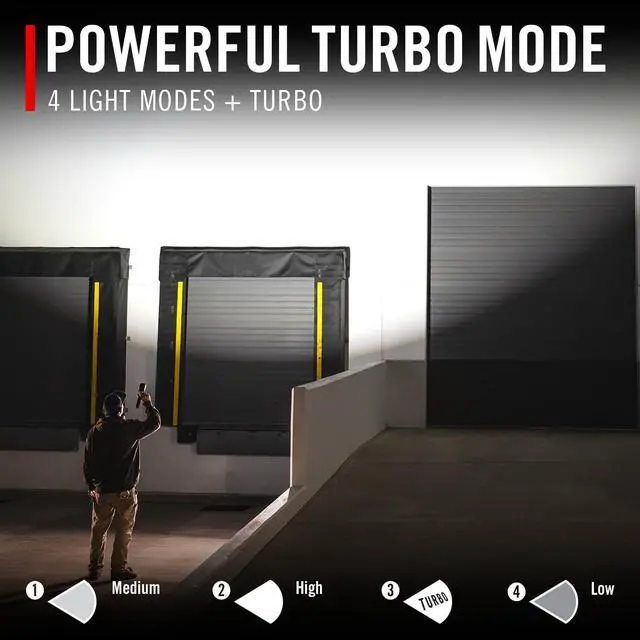 Select from four light modes—medium, high, Turbo, and low—to match the flashlight’s output to your need.