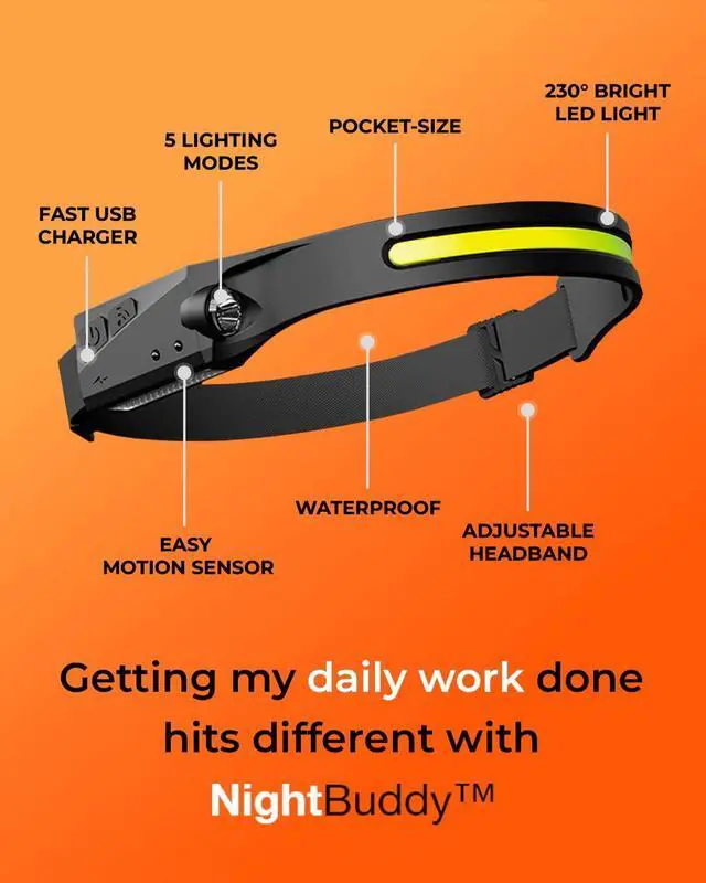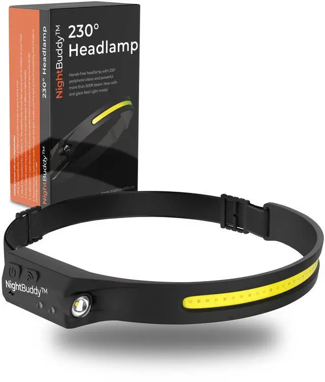 Night Buddy is the only headlamp that gives you 230° illumination, a powerful light beam up to 100 meters plus red light technology to reduce glare, protect wildlife and keep bugs at bay!