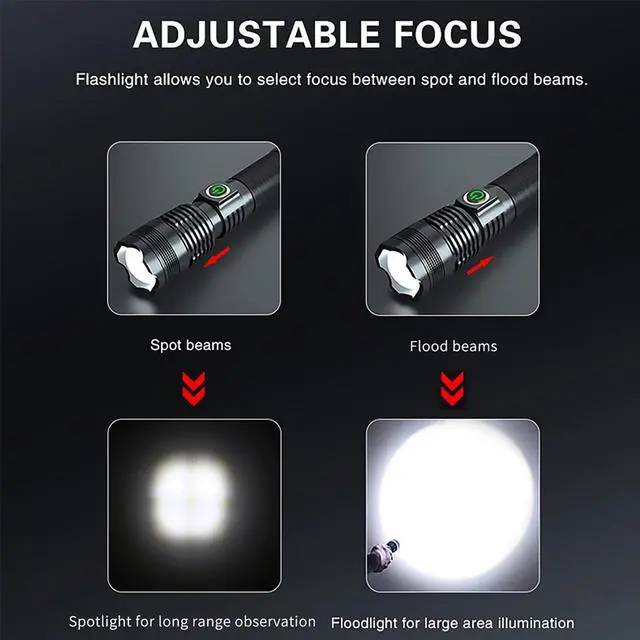 Portable LED flashlight with easy mode-switch by light taps of a button; it provides people with dependable and convenient lighting tools, perfect for Camping, Hiking, Cycling, Home Emergency, or Gift-Giving.