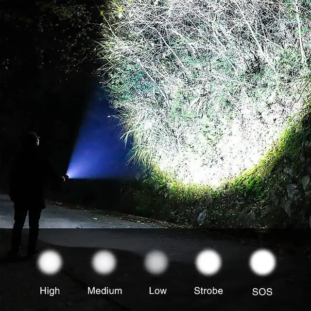 There are 5 operating modes: High, Medium, Low, Strobe, and SOS.