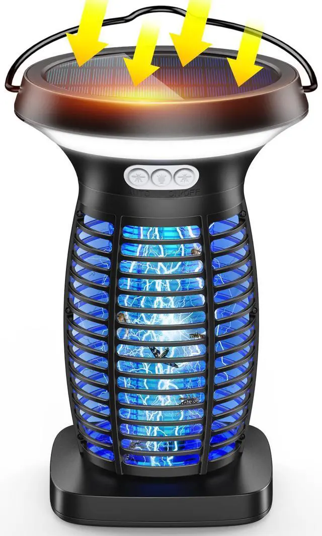 Solar Bug Zapper Outdoor, 3-in-1 Mosquito Zapper Outdoor Solar Powered, Cordless Electric Bug Zapper Indoor with Night Light, Waterproof Fly Zapper for Patio Backyard Home Kitchen Camping