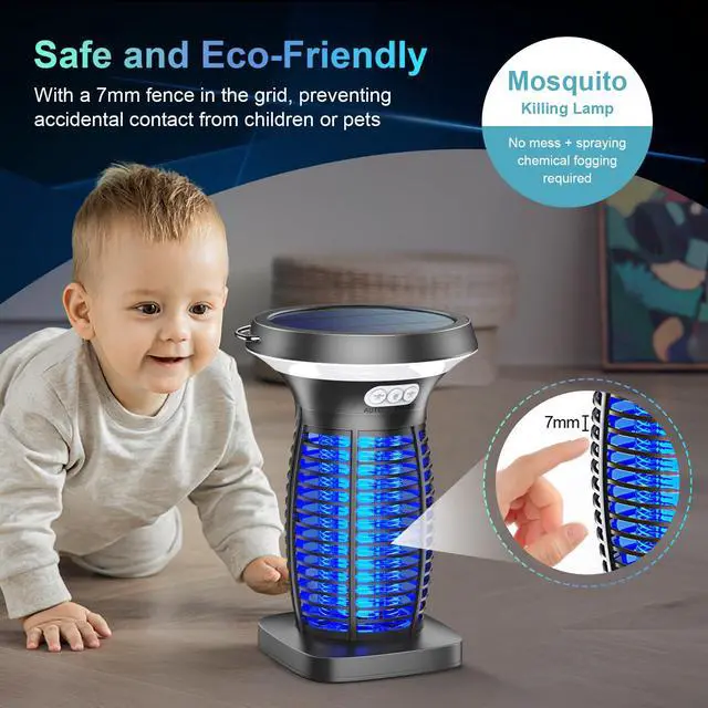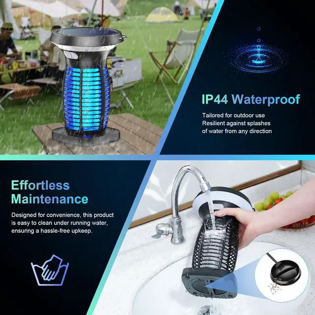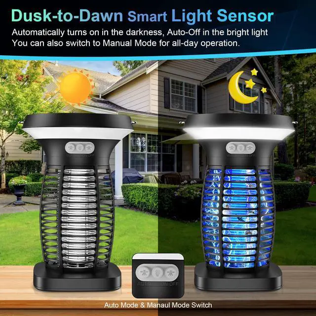 3-In-1 Bug Zapper Solar Powered - This versatile solar monster zapper seamlessly transitions between bug zapper, night light, and SOS modes, offering the ultimate solution for bug control. With a built-in light sensor, it automatically deactivates during the day for solar charging and switches to mosquito mode at night. You can also opt for manual mode for continuous 24-hour mosquito control. Perfect for patio, yard, garden, bedroom, kitchen, garage, balcony, camping - Outdoor & Indoor use.