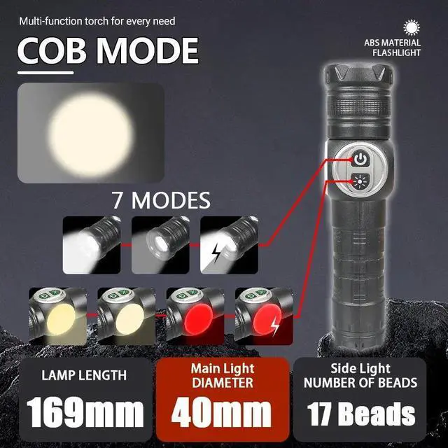 High Power White Laser LED Flashlight Built-in Battery USB R