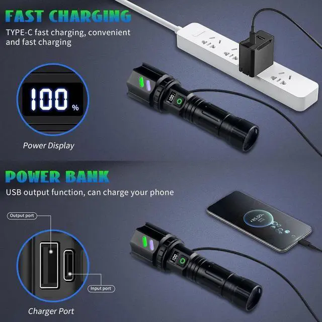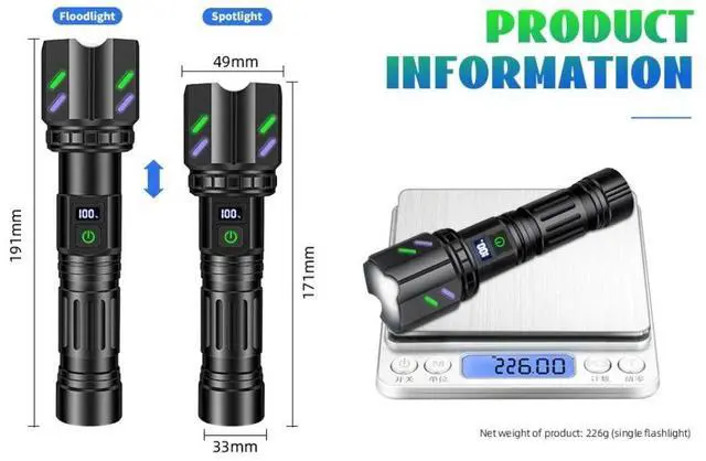Features: Cool fluorescent strip, with ignitable lens, bi-directional charging, digital display