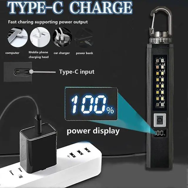 Built-in 18650 rechargeable battery with USB charging and digital power percentage display