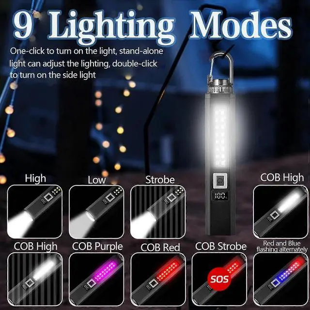 This versatile 4-in-1 LED tactical flashlight is your ultimate outdoor companion, featuring multiple light sources (white, purple, red, blue) and 10 lighting modes to adapt to any situation.
