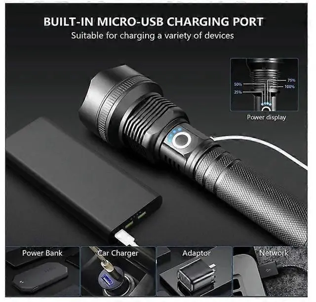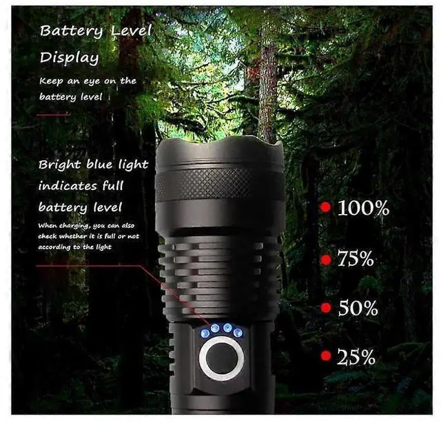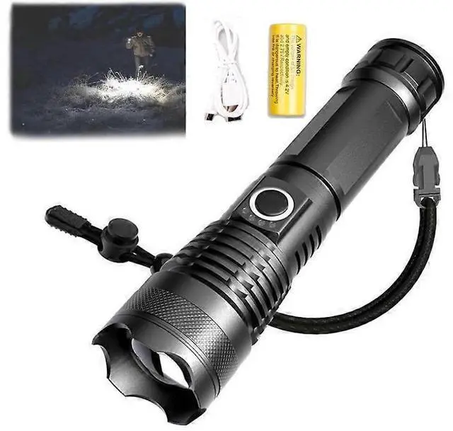 Experience powerful illumination with this 90000-lumen rechargeable LED flashlight, designed for reliability in any condition.