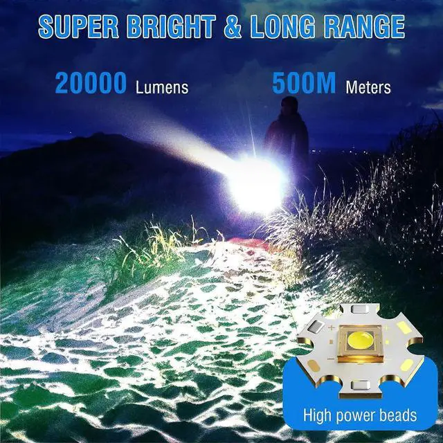 000 Lumens: High-power imported LED wicks deliver intense light up to 200 meters, perfect for driving away darkness in any situation.