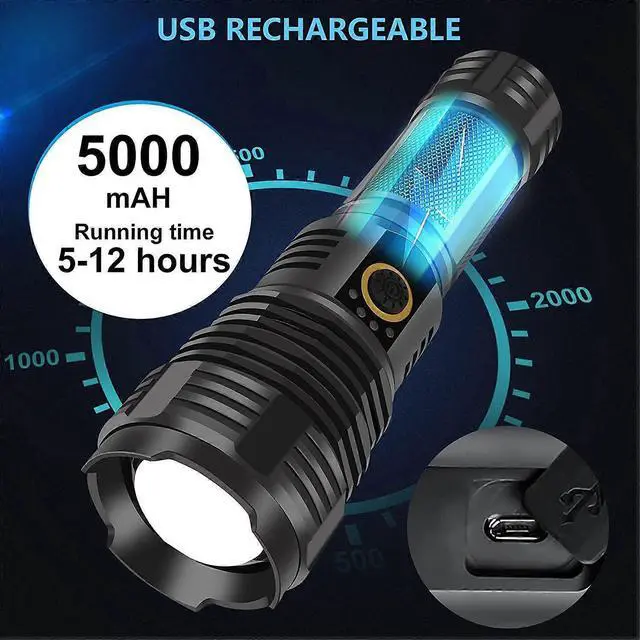 Ultra-bright XHP70 LED chip delivers 180, 000 lumens for powerful illumination in any condition. \n Multiple brightness modes adapt to various environments, from camping to emergencies. \n Waterproof and shockproof design ensures durability in harsh outdoor adventures. \n High-quality aluminum alloy construction provides a comfortable, non-slip grip. \n Rechargeable battery offers eco-friendly, fast charging for reliable high-brightness lighting.