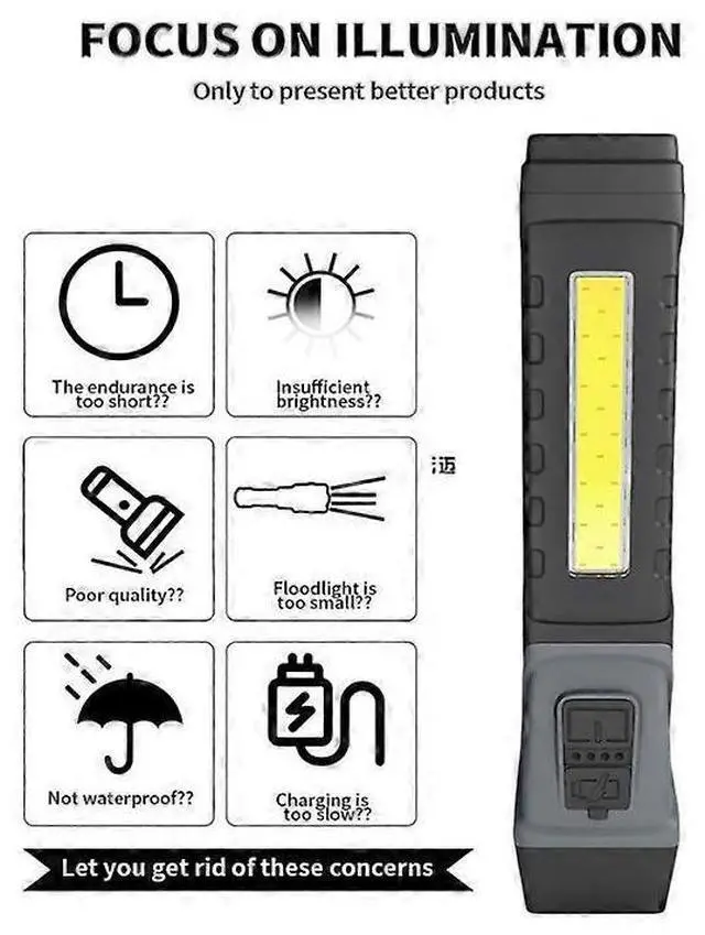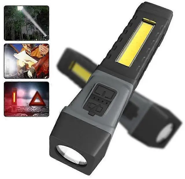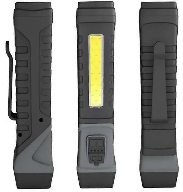 This versatile rechargeable LED light combines a powerful flashlight with a flexible work light, featuring a 90° folding head and 360° magnetic base for hands-free use. Ideal for professionals and outdoor enthusiasts.