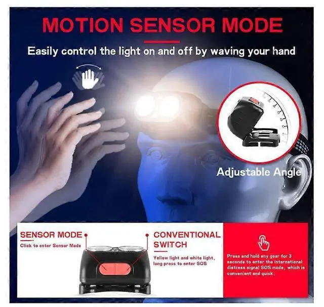 Motion Sensor Technology: Wave your hand to turn the light on/off, keeping the headlamp clean and easy to operate.