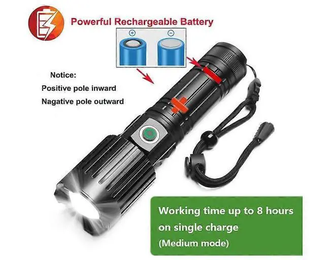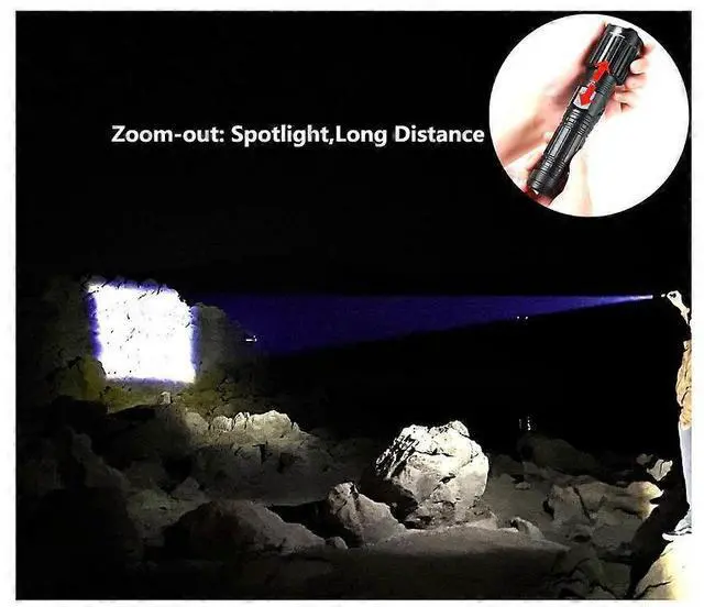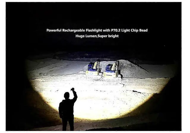 **5000 Lumens Super Brightness**: Powered by an upgraded XHP 70.2 chip, it's 10x brighter than standard flashlights, illuminating up to 1000 feet or a 1500 sq ft room with zoomable focus.