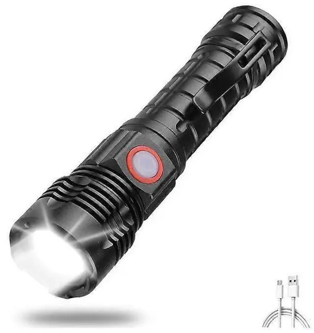 Experience powerful illumination with this XHP50 LED rechargeable flashlight, delivering 800 lumens and a 200-meter beam distance. Ideal for outdoor adventures and emergency use.