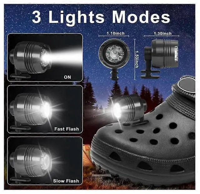 Upgrade your Crocs with these versatile LED headlight attachments, designed for both style and functionality. Ideal for outdoor activities like hiking, camping, and dog walking, they ensure visibility and safety in low-light conditions.