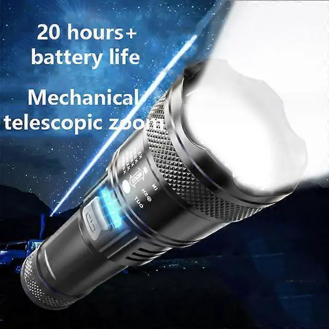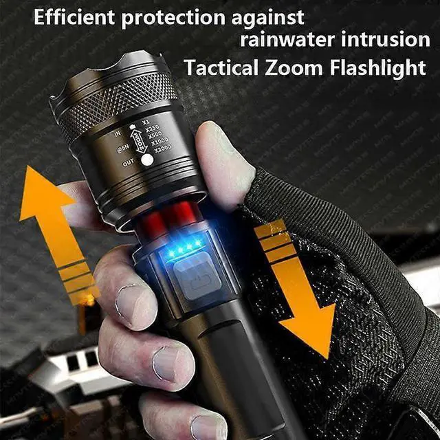 Upgrade your outdoor adventures with this high-performance rechargeable flashlight, featuring a powerful LED chip for up to 500 meters of beam distance. Ideal for hiking, camping, and emergency use, it offers versatile functionality in any weather.