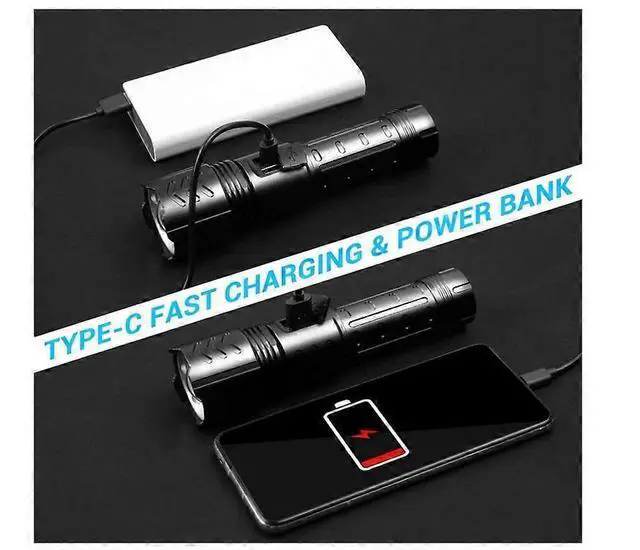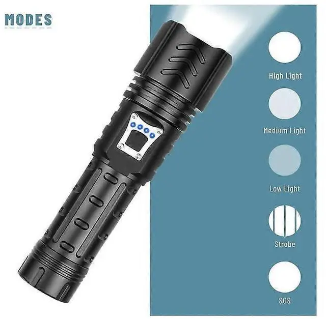 - **Battery Indicator & Portability**: Includes 18650/26650 battery compatibility, 3-5 hours runtime, 4 blue battery indicators, and a wrist strap for easy carrying. Ideal for outdoor adventures, emergencies, and tactical needs.