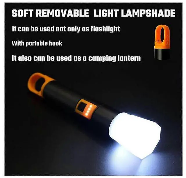 \n Removable Lampshade: Converts flashlight into a lantern for diffused lighting at campsites, BBQs, or indoor settings.