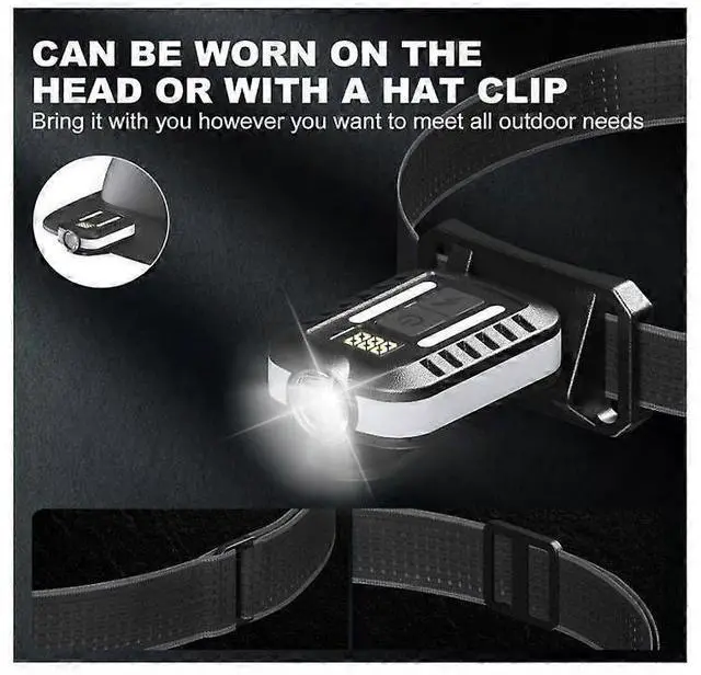 Illuminate your tasks with this versatile LED cap light, featuring a digital power display for real-time battery monitoring and a flexible 90° adjustable head. Its 2-in-1 design clips securely onto hats or clothing and includes a comfortable, adjustable headband for hands-free use.
