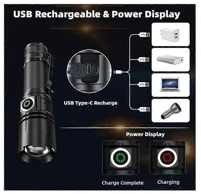 **Adjustable Focus & Single Mode**: Zoom head for switching between long-distance and wide lighting; simple on/off with dimming via long press.