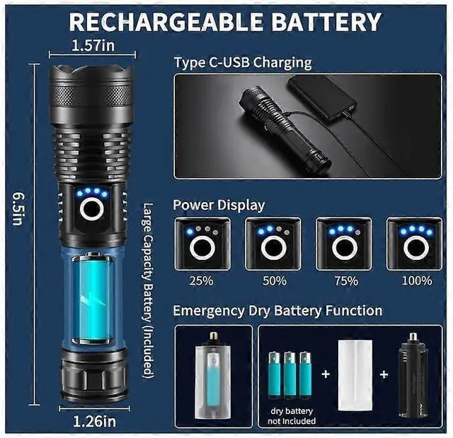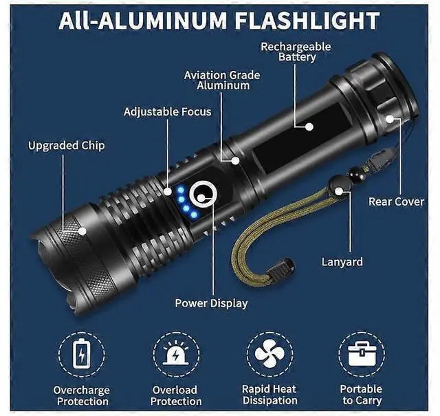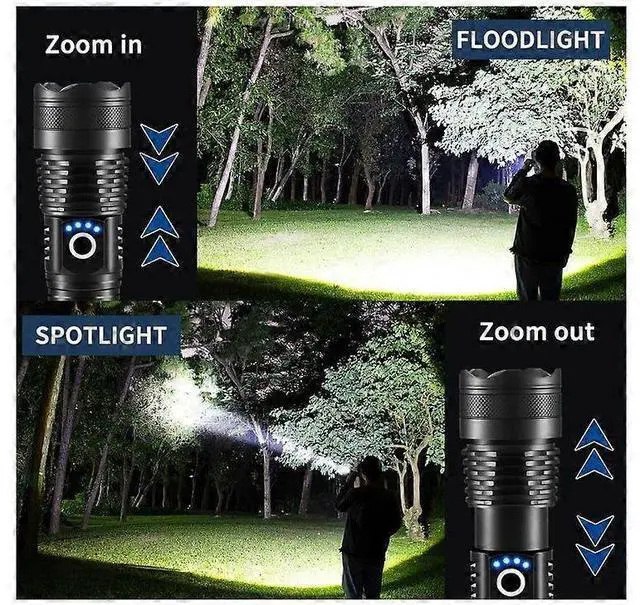 Modes: Seamlessly switch between spot and flood lighting with zoomable focus, plus High, Medium, Low, Strobe, and SOS modes for any situation. \n Fast Rechargeable &
