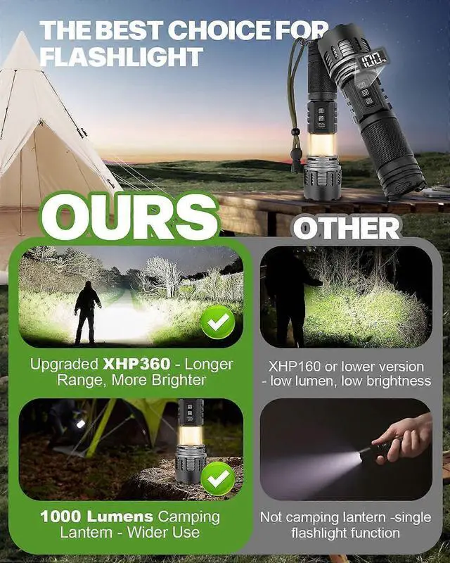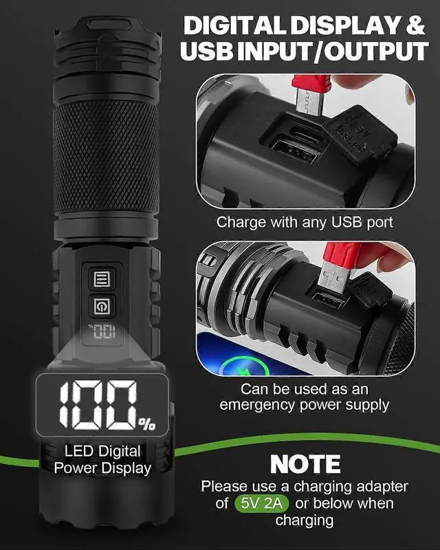 Lumens**: Illuminate up to 4900 feet for clear visibility in darkness, ideal for home emergencies and outdoor adventures.