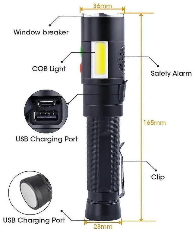 Stay safe and prepared with this versatile rechargeable flashlight, featuring a powerful 128dB personal alarm and 800 high lumens for any situation.