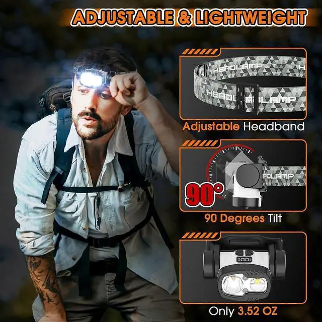 Experience ultimate hands-free lighting with our rechargeable LED headlamp, featuring 1500 lumens of super bright illumination perfect for outdoor adventures and emergency situations.