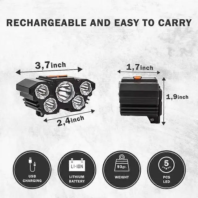 Ultra-bright LEDs illuminating up to 350 meters, perfect for camping, hiking, running, fishing, car repairs, and emergency situations