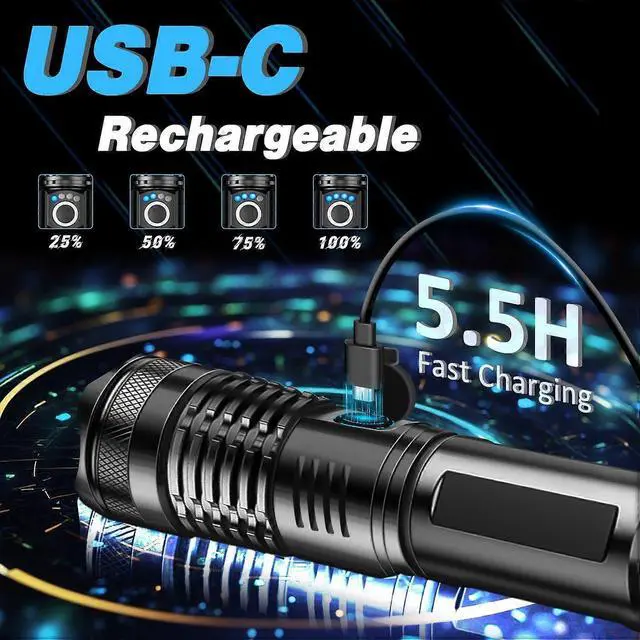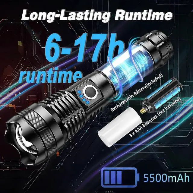 **Fast USB-C Rechargeable**: Built-in 5500mAh battery charges fully in 5.5 hours, with 4 power indicators; includes AAA battery holder as backup for emergencies.