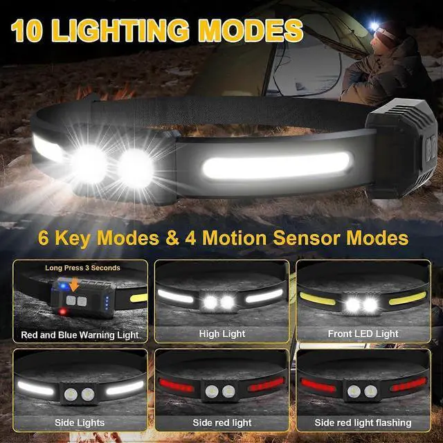 Upgrade your outdoor gear with our intelligent LED headlamp set, featuring advanced motion sensor technology for hands-free operation.